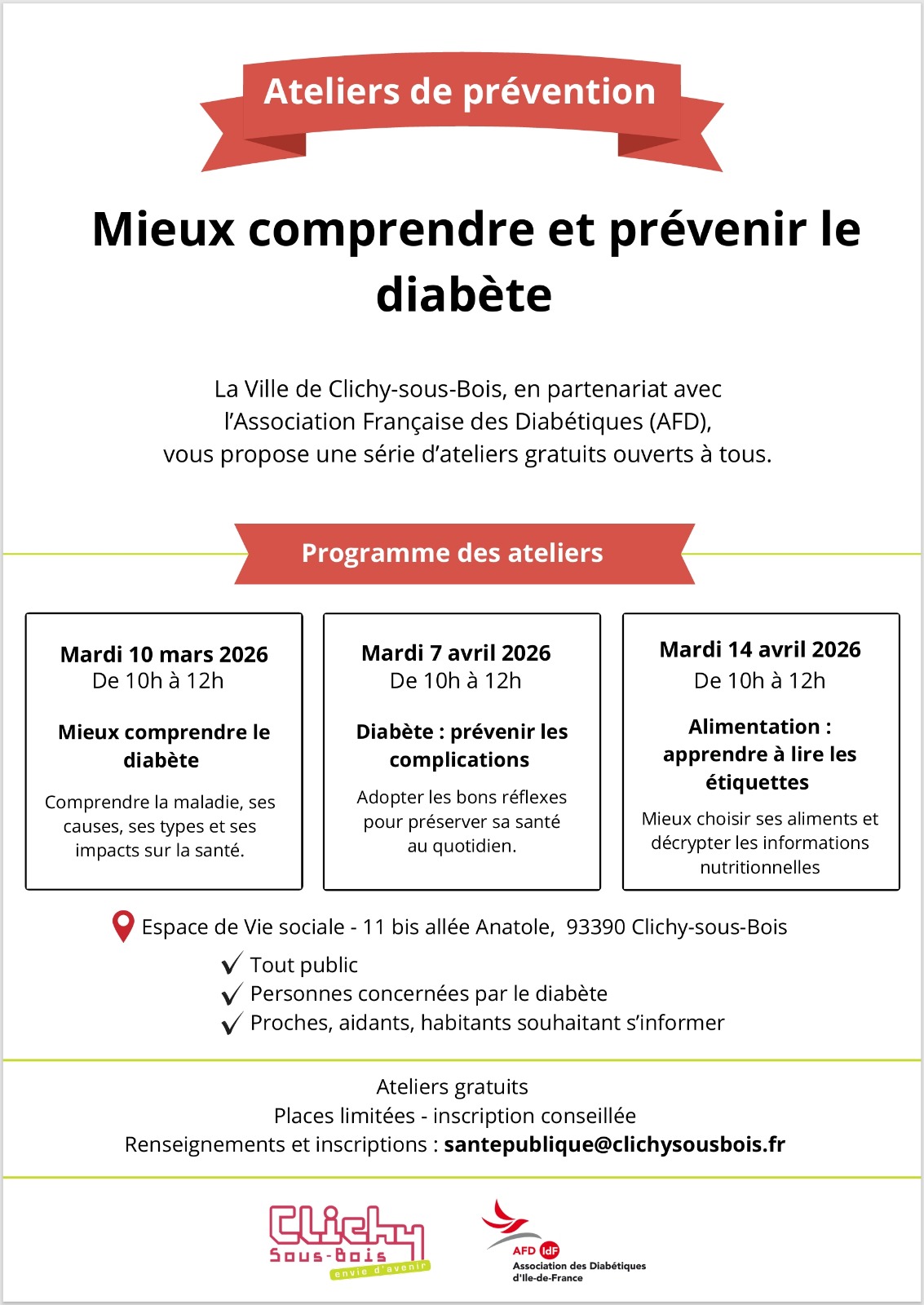 A la Maison de la prévention de l'obésité, du diabète et des maladies cardiovasculaires de Bobigny et Bondy, de 14h à 16h, en accès libre.